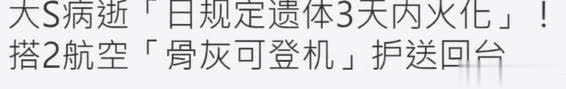 另外据殡葬行业的相关人员透露,日本规定了遗体必须在3日内进行火化,大S是在2日的早上7点离世的,推算时间推算,她的遗体即将进行火化。